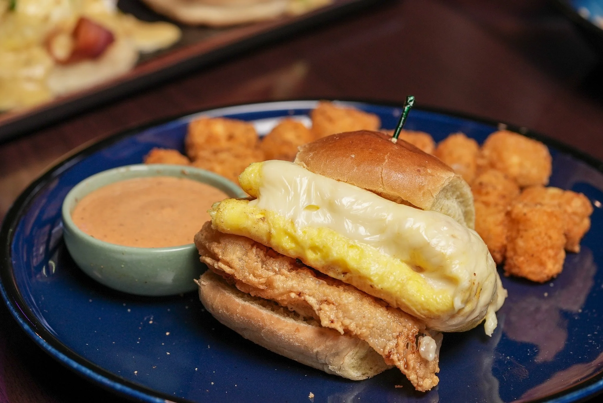 Folded Omellete, Breakfast Sausage, American Cheese, Chipotle Aioli, with choice of Side & Dipping Sauce